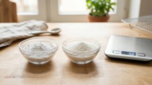 コーンスターチは、小麦粉やココアパウダーなど他の粉末食材とも非常になじみが良いのが特徴です。例えば、焼き菓子を作る際に小麦粉の一部をコーンスターチに置き換えることがあります。その際、粒子同士が反発することなく均一に混ざり合うため、生地全体の密度を安定させることができます。